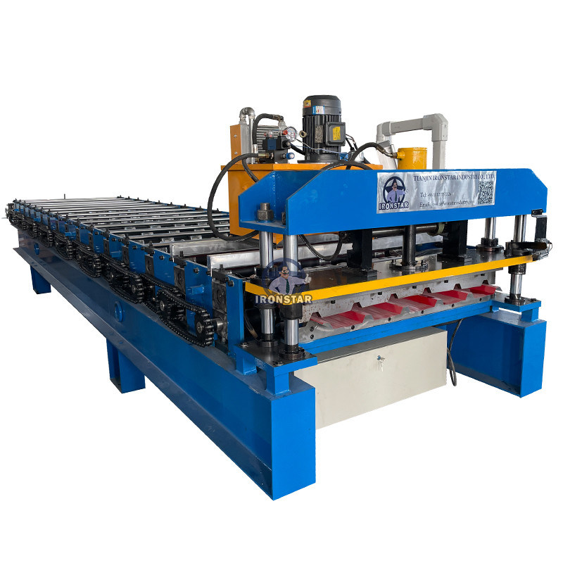 ट्रैपेज़ॉइडल शीट रोल बनाने की मशीन कई देशों में लोकप्रिय बिकती है, 0.3-0.6 मिमी से सामान्य ट्रेपोज़ाइडल छत शीट रोलिंग मोटाई, सामग्री का उपयोग PPGI (प्री-पेंटेड गैल्वेनाइज्ड स्टील) सामग्री