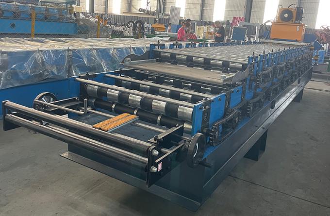 OEM अनुकूलित 0.3-0.8 मिमी धातु शीट 840 मिमी और अफ्रीका के लिए 1000 मिमी घुटा हुआ टाइल डबल परत रोल बनाने की मशीन